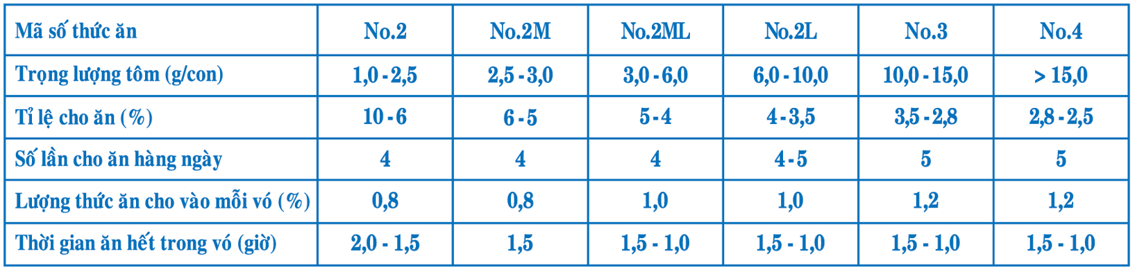 • Tùy theo nhiệt độ, màu nước, tình trạng sức khỏe tôm mà điều chỉnh lượng thức ăn thích hợp.