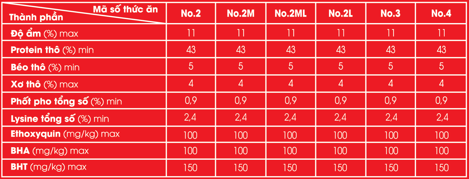 • Khi muốn thay đổi cỡ thức ăn thì trộn chung cỡ thức ăn cũ và mới với tỷ lệ 50% trong 3 - 4 ngày.