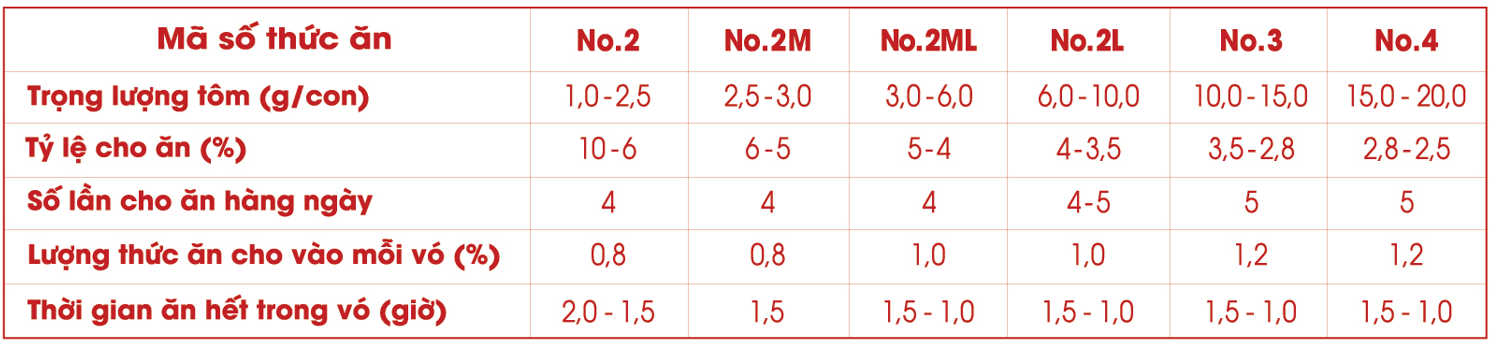 • Tùy theo nhiệt độ, màu nước, tình trạng sức khỏe tôm mà điều chỉnh lượng thức ăn thích hợp.